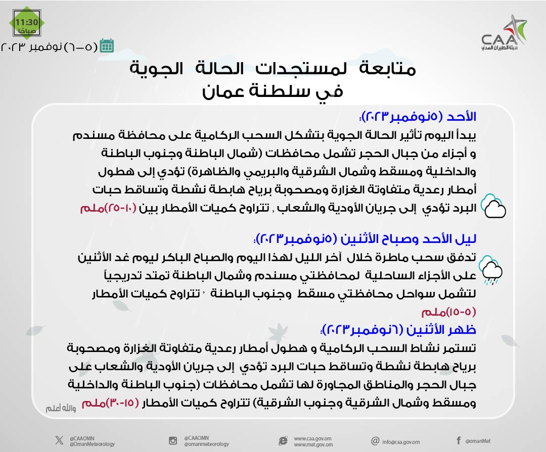 وأشارت الأرصاد العمانية إلى مستجدات الحالة الليلة ويوم غدًا الأثنين عبر المرفق التالي: