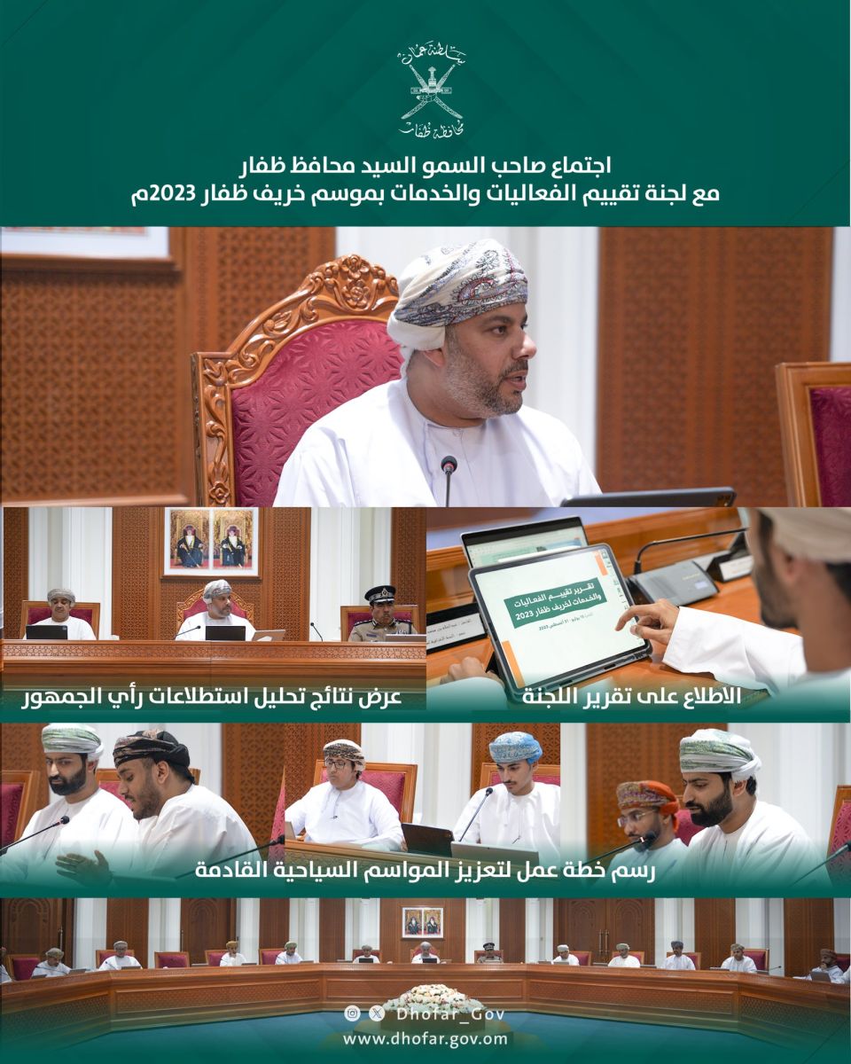 سمو السيد محافظ ظفار يناقش تقرير لجنة تقييم فعاليات وخدمات موسم خريف ظفار 2023