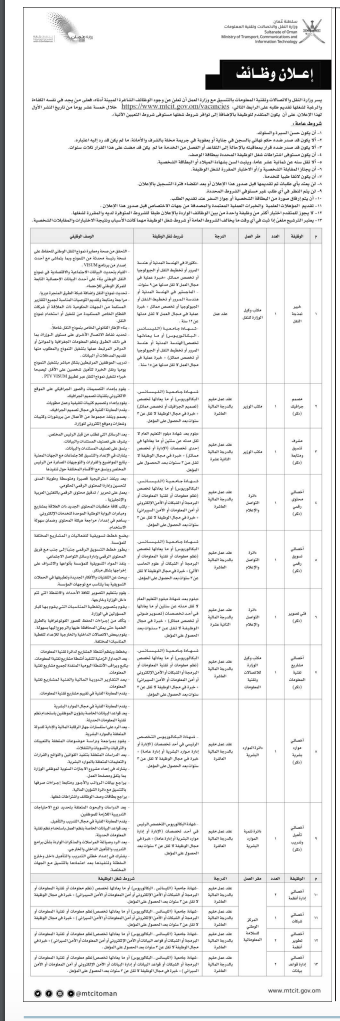 وزارة النقل والاتصالات تعلن عن وظائف شاغرة