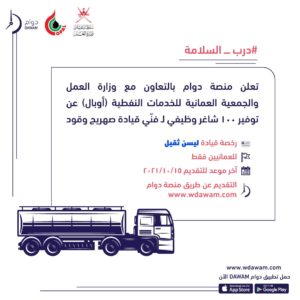 الصفحة الرئيسيةالأخبارالإعلان عن توفر 100 شاغر وظيفي لقيادة صهاريج الوقود الإعلان عن توفر 100 شاغر وظيفي لقيادة صهاريج الوقود 28 سبتمبر 2021 الوصال – أعلنت منصة دوام بالتعاون مع وزارة العمل والجمعية العمانية للخدمات النفطية “أوبال" عن توفير 100 شاغر وظيفي لـ فنّي قيادة صهريج وقود مخصصة للعمانيين .