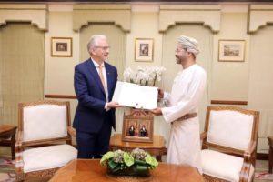 الوصال - تسلّم معالي السيد بدر بن حمد بن حمود البوسعيدي وزير الخارجية صباح اليوم، وثيقة انضمام حكومة جمهورية ألمانيا الاتحادية إلى مركز الشرق الأوسط لأبحاث التحلية وذلك خلال استقبال الوزير لسعادة توماس شنايدر السفير الالماني المعتمد لدى سلطنة عمان.