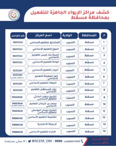 الصفحة الرئيسيةالأخبارالكشف عن 55 مركزًا للإيواء جاهزة للتفعيل في مسقط الكشف عن 55 مركزًا للإيواء جاهزة للتفعيل في مسقط 02 أكتوبر 2021 الوصال – كشفت اللجنة الوطنية لإدارة الحالات الطارئة عن55 مراكزًا للإيواء جاهزة للتفعيل في محافظة مسقط وهي كالتالي: