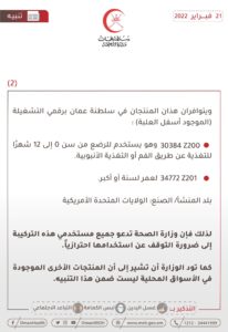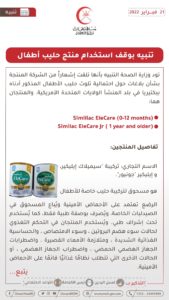 الصفحة الرئيسيةالأخبارالصحة تنوه بالتوقف عن استخدام منتجين من حليب الأطفال الصحة تنوه بالتوقف عن استخدام منتجين من حليب الأطفال 21 فبراير 2022 نوهت وزارة الصحة بوقف استخدام حليب الأطفال "سيميلاك إيليكير وإيليكير "جونيور" وذلك بعد تلقي الوزارة شعارًا من الشركة المنتجة باحتمالية تلوث الحليب .