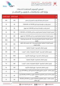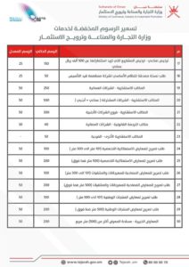 الوصال – خفضت وزارة التجارة والصناعة وترويج الاستثمار رسوم 30 خدمة، تراوحت نسب من 17% الى 96% في بعض الخدمات.