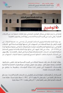 وأكدت الوزارة أن نشر إعلان تصفية الشركات في الجريدة الرسمية هو إجراء قانوني ملزم لإنهاء التعاملات وحفظ حقوق الغير، ويعتبر إجراء طبيعي ليتواكب مع المتغيرات الاقتصادية العالمية والمستجدات التكنولوجية التي تفرض إعادة هيكلة المؤسسات وتطويرها بما يتوافق مع متطلبات المستجدات الراهنة.