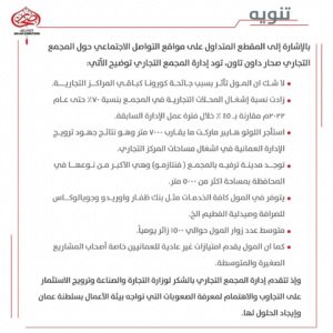 بشأن مقطع متداول إدارة المجمع التجاري صحار داون تاون تنشر توضيحا