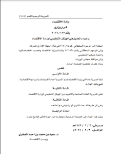 الوصال – أصدر معالي الدكتور سعيد الصقري وزير الاقتصاد قرارًا وزاريًا بإنشاء مديرية عامة د باسم "المديرية العامة للسياسات والبرامج الاقتصادية" تتبع وكيل الوزارة، كما قضى القرار بإلغاء المديرية العامة للمتابعة والتقييم من الهيكل التنظيمي لوزارة الاقتصاد.
