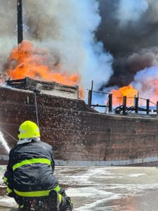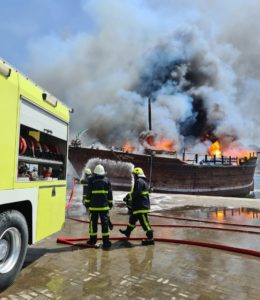 إصابة شخصين في حريق سفينة خشبية بميناء خصب