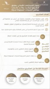 وقد بدأ الجهاز في تخطيط المشروع منذ شهر يوليو الماضي وقام بتكليف شركة تكاتف - إحدى الشركات التابعة له من أجل إجراء دراسة شاملة للشركات المملوكة للدولة ضمن ثلاثة محاور رئيسية وهي لوائح الموارد البشرية، والرواتب، والمزايا، والهياكل التنظيمية للشركات.