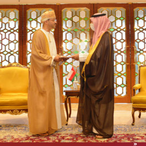 سلّم الرسالة معالي السيد بدر بن حمد البوسعيدي وزير الخارجية خلال لقائه الأمير فيصل بن فرحان وزير الخارجية في المملكة العربية السعودية اليوم.