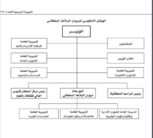 الصفحة الرئيسيةالأخبارمخطط لـ الهيكل التنظيمي لديوان البلاط السُّلطاني مخطط لـ الهيكل التنظيمي لديوان البلاط السُّلطاني 12 ديسمبر 2021 الوصال – أصدر حضرة صاحب الجلالة السلطان هيثم بن طارق المعظم- حفظه الله ورعاه- في السادس من ديسمبر الجاري مرسومًا سلطانيًا ساميًا باعتماد الهيكل التنظيمي لديوان البلاط السُّلطاني، ونشرت الجريدة الرسمية اليوم الهيكل التنظيمي حسب المرفق التالي:
