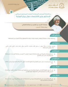 الوصال – تسآءل سعادة أحمد العزاني ممثل ولاية البريمي عن خطة العمل لدعم قطاعات الأمن الغذائي والمائي بالسلطنة، وذلك خلال مجلسة مناقشة بيان وزارة الاقتصاد اليوم في مجلس الشورى.