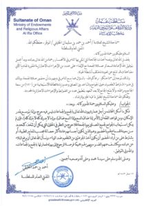 الوصال - أصدر سماحة الشيخ الجليل أحمد بن حمد الخليلي المفتي العام للسلطنة فتوى شرعية بشأن حضور صلاة الجمعة في ظل الاحترازات المقررة بشأن الحد من جائحة كورونا.