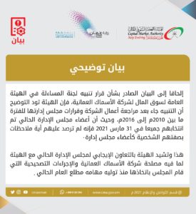 الوصال – قالت الهيئة العامة لسوق المال عبر حسابها على "تويتر" حول سوق المال تنبه شركة الأسماك العمانية وتلزمها بتقديم خطة إجراءات تصحيح أوضاعها أن التنبيه جاء بعد مراجعة أعمال الشركة وقرارات مجلس إدارتها للفترة ما بين 2010م إلى 2016م، حيث أن أعضاء مجلس الإدارة الحالي تم انتخابهم جميعا في 31 مارس 2021 فإنه لم ترصد عليهم أية ملاحظات بصفتهم الشخصية كأعضاء مجلس إدارة.