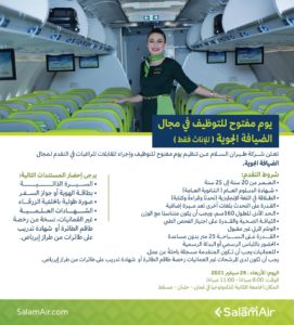 الصفحة الرئيسيةالأخبارطيران السلام يعلن عن يوم للتوظيف في مجال الضيافة للإناث طيران السلام يعلن عن يوم للتوظيف في مجال الضيافة للإناث 23 سبتمبر 2021 الوصال - أعلن طيران السلام اليوم عن يوم مفتوح للتوظيف في مجال الضيافة الجوية للإناث فقط وذلك في يوم الأربعاء المقبل الموافق 29 سبتمبر 2021، بمقر الجامعة الألمانية للتكنولوجيا.