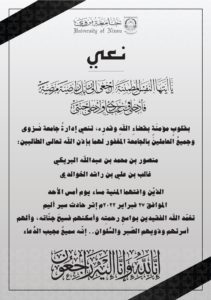 وقد نعت اليوم إدارة جامعة نزوى وفاة الطالبين إثر حادث سير الأليم لحافلة خاصة قادمة من مكان سكنهم إلى الجامعة.