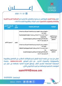 وزارة العمل تعلن عن توفر وظيفتين شاغرتين لدى منظمة (الألكسو)