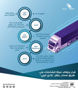 ويأتي القرار بالتعاون مع شرطة عمان السلطانية وفي إطار تنظيم حركة الشاحنات وإدارتها على الطرق الرئيسة وسعيًا إلى انسيابية حركة المرور والحد من الحوادث المرورية.