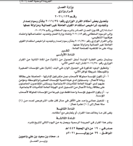 الوصال - أصدر معالي الدكتور محاد بن سعيد بن علي باعوين قرارًا وزاريًا بتعديل بعض أحكام رسوم إصدار وتجديد تراخيص استقدام القوى العاملة غير العمانية ومزاولة عملها.