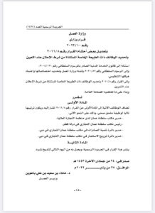 الوصال – أصدر معالي الدكتور محاد باعوين وزير العمل قرارًا وزاريًا بإضافة 4 وظائف ضمن الوظائف ذات الطبيعة الخاصة المستثناه من شروط الإعلان عند التعيين وهي :