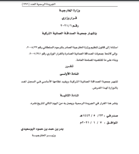 الوصال - أصدر معالي السيد بدر بن حمد البوسعيدي وزير الخارجية قرارًا وزاريًا بإشهار جمعية الصداقة العمانية التركية، وتقيد نظامها الأساسي في السجل المعد بالوزارة لهذا الغرض .