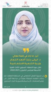 رئيس مجلس الشورى تداخل حول بيان التنمية الاجتماعية بأن هناك زيادة في خريجي تخصص (اختصاصي اجتماعي) موصيا بضرورة استيعاب الكوادر الوطنية، بتوظيفهم وتوفير درجات مالية لهم.