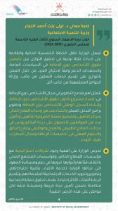 الوزيرة أكدت أن الوزارة تعمل مع عدة جهات لتبني تأهيل ودعم بعض المشاريع في بعض المناطق وأن هناك عملا مشتركا مع شركات القطاع الخاص لدعم الخدمات المقدمة لذوي الاحتياجات الخاصة وكبار السن.